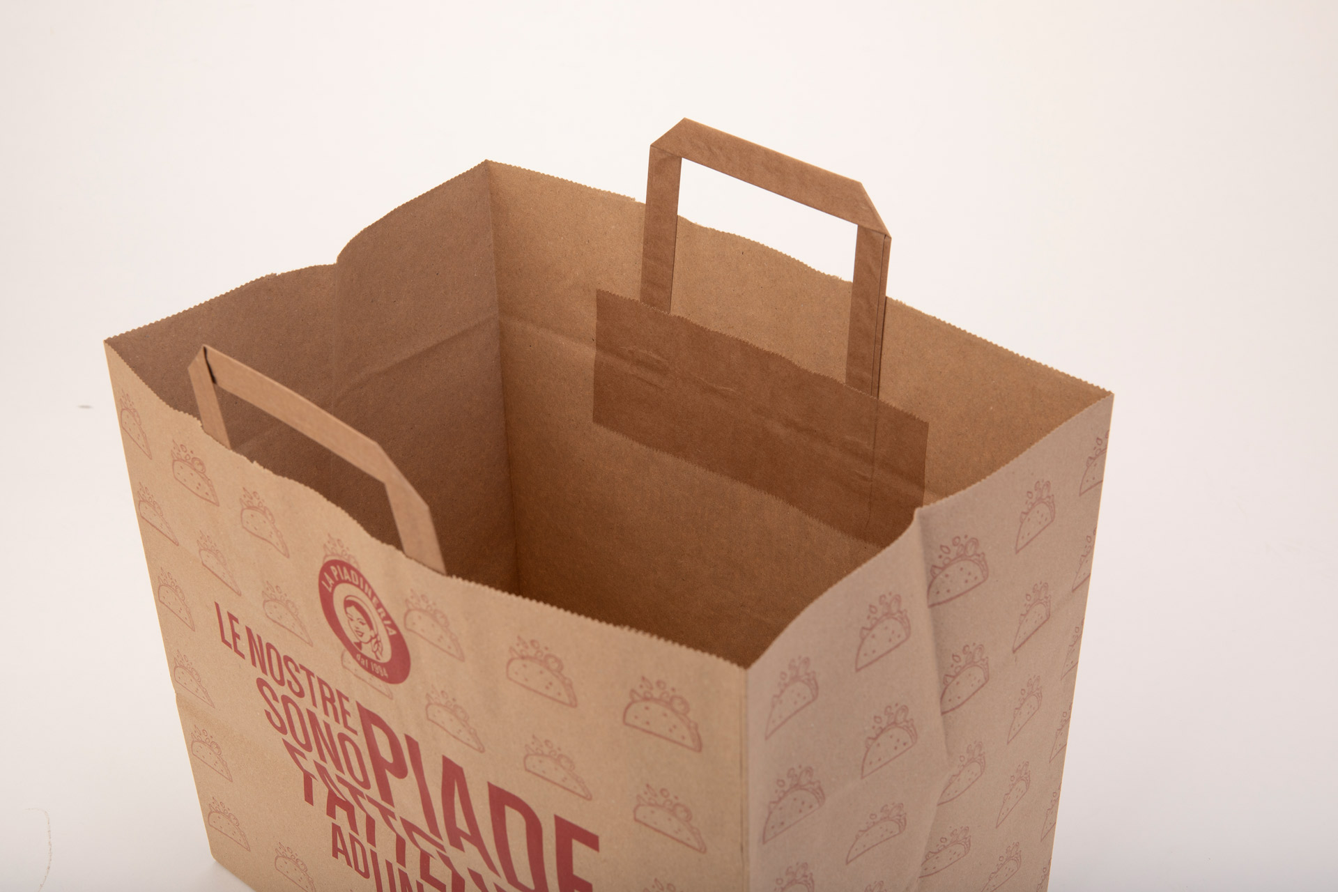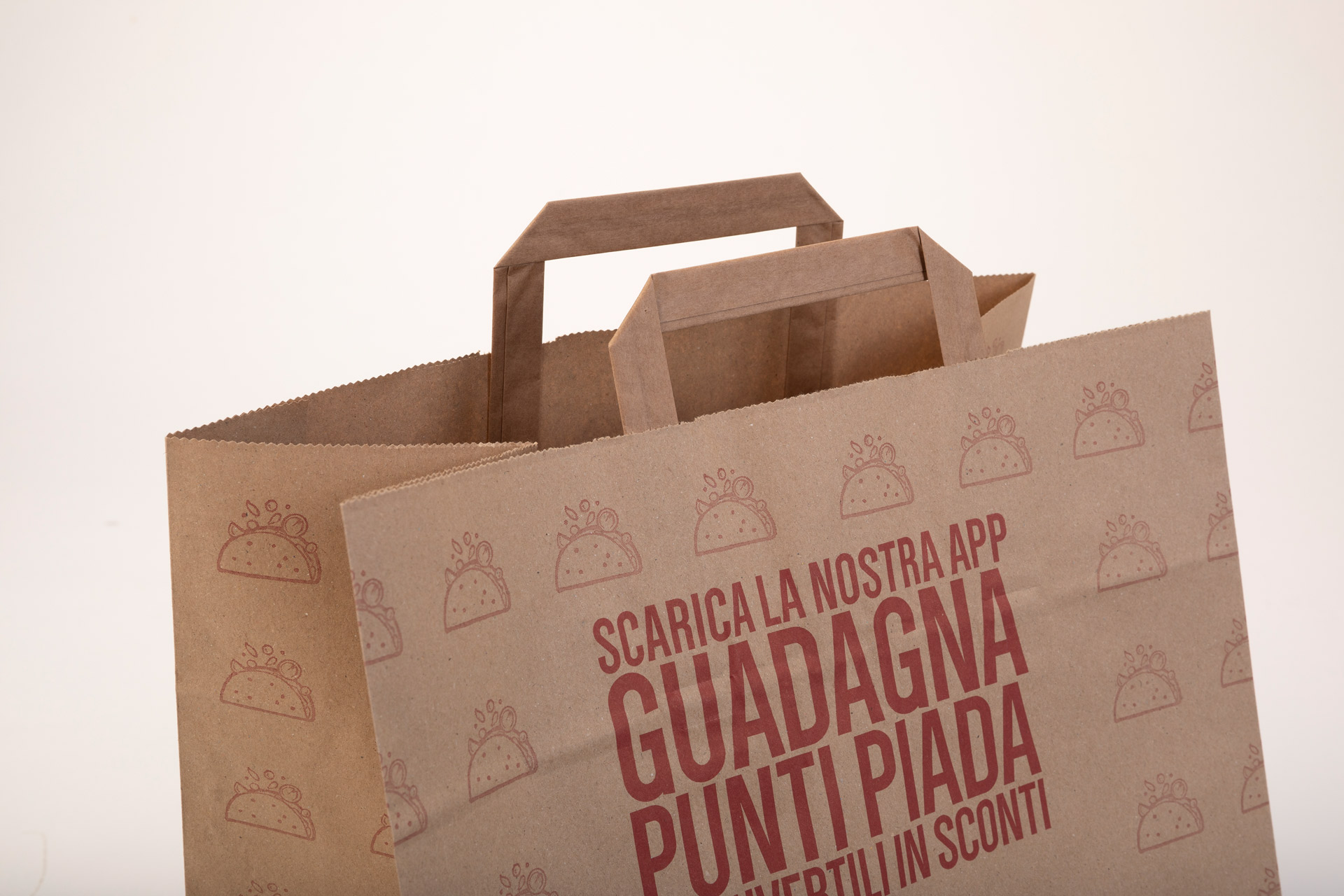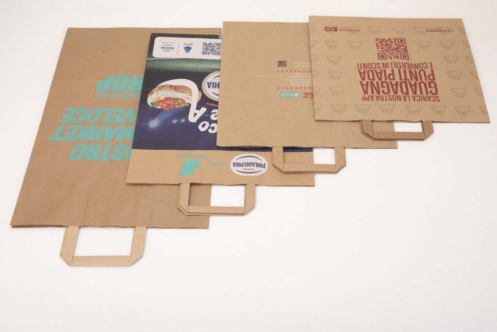 Le shopper in carta per il delivery di Bagspagroup sono progettate per soddisfare le esigenze del settore della ristorazione, garantendo resistenza, praticità e sostenibilità. Realizzate in carta kraft di alta qualità, queste shopper offrono un’alternativa eco-friendly per il trasporto di cibo e prodotti, mantenendo la freschezza e l’integrità del contenuto durante la consegna. Grazie alla loro struttura robusta, sono perfette per il trasporto di pasti pronti, bevande, e altre merci voluminose o pesanti.